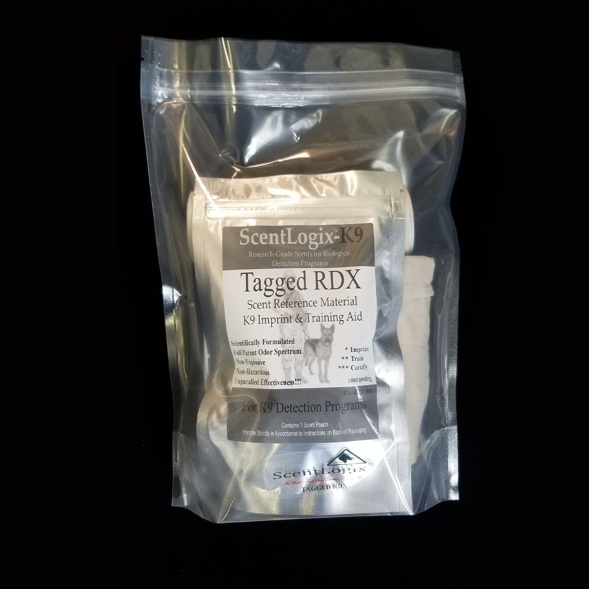 O Sachê de aroma sintetizado não explosivo ScentLogix Tagged RDX deve ser utilizado para formação e manutenção de treinamento de cães de detecção de Tagged RDX.